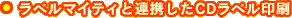 ラベル印刷機能を利用して、CDラベル印刷ができます。プレイリストを指定すると、そのまま曲名やアーティストなどの情報を簡単に引き継ぐことができます。 ※CDラベル印刷にはラベルマイティが必要です。