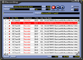 MP3 BeatJamは、音楽CDの楽曲をデータとしてPCに読み込む「リッパー」と呼ばれる機能と、読み込んだデータをMP3形式に変換する「エンコード」機能が同時に動作。 音楽CDをCD-ROMドライブに入れ、プレーヤーの録音ボタンを押すだけで簡単にMP3ファイルを作成可能。