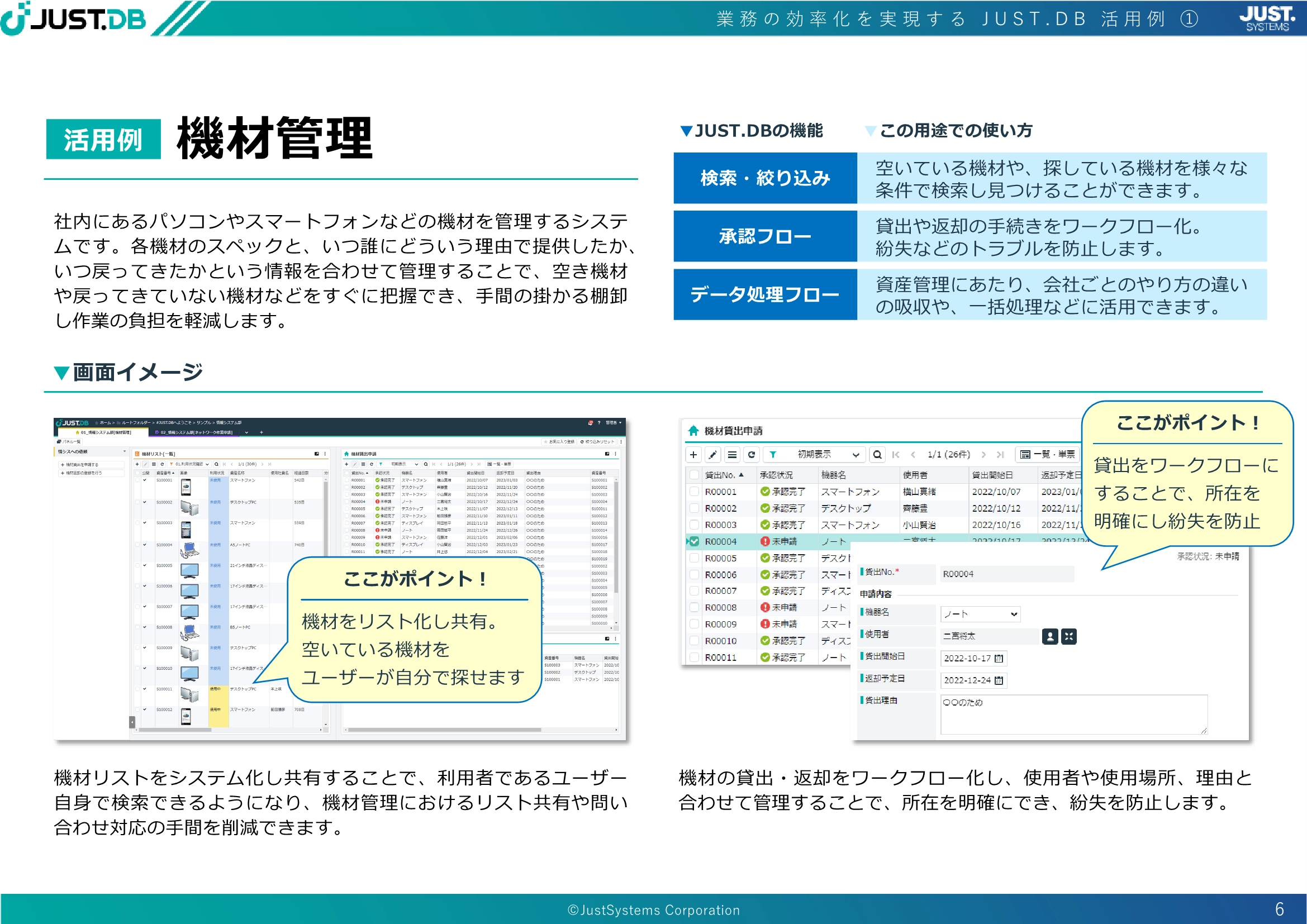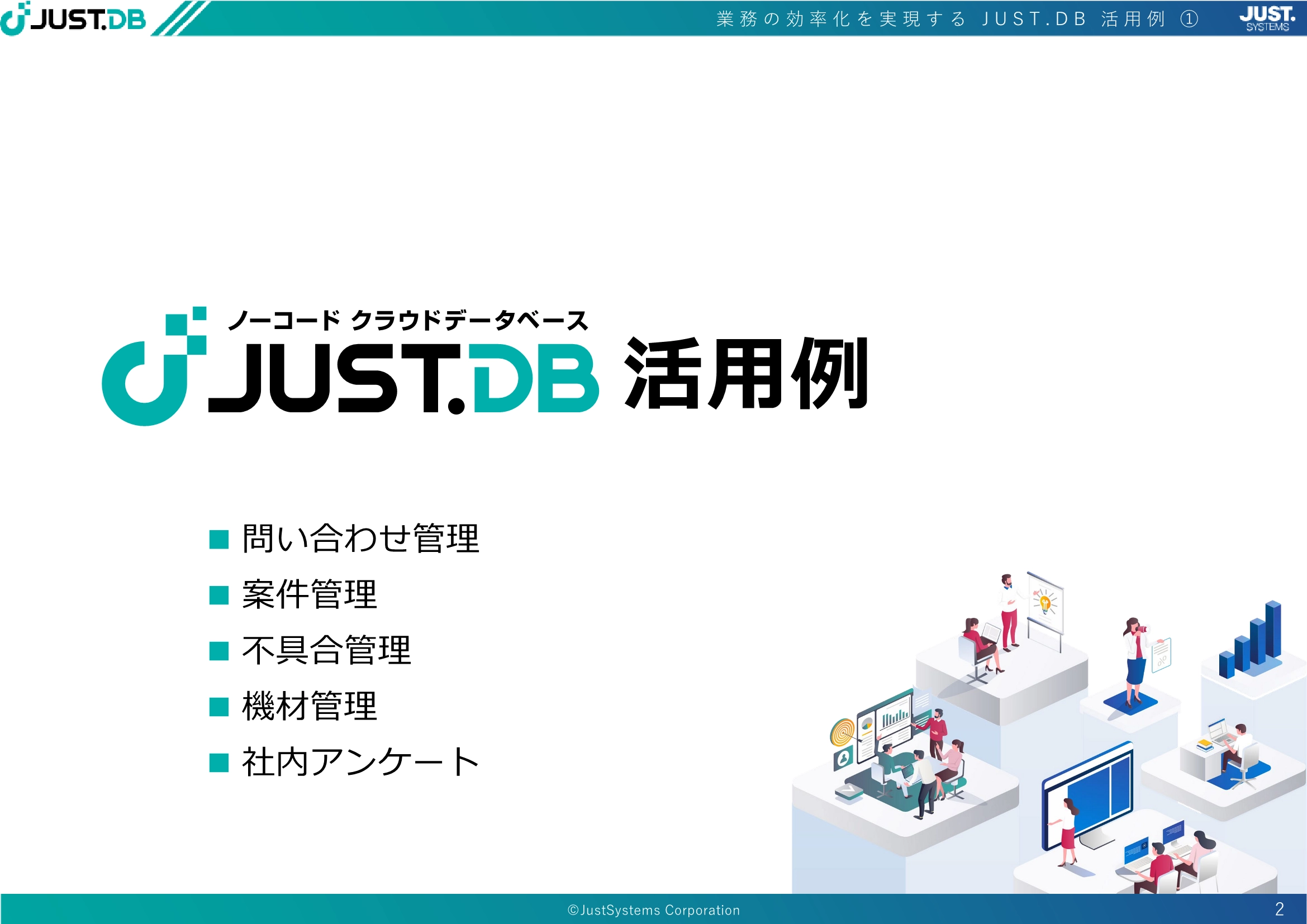 本資料では、JUST.DBで構築できる、具体的な業務システムの例をご紹介します。