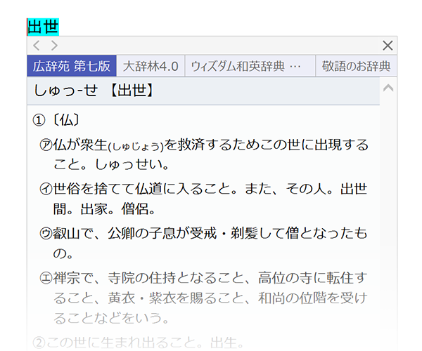 ATOKと連携して検索できる電子辞典を、クラウド辞典として提供しています。