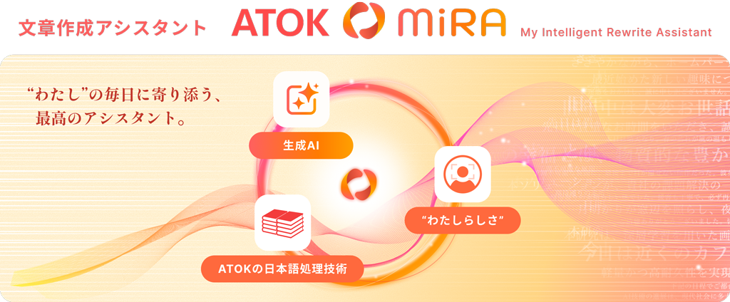いつもの日本語入力の場面からシームレスに文章を生成できる「ATOK MiRA」(エイトックミラ:ATOK My Intelligent Rewrite Assistant)が登場しました。