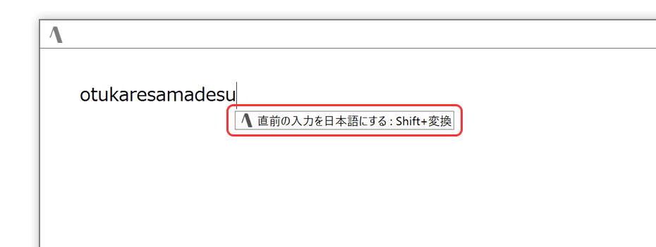 入力済みの文章を範囲指定し、表示されたアシストアイコンに従ってShift+Ctrl+Mキーを押し、どう書き換えるかを指定します。