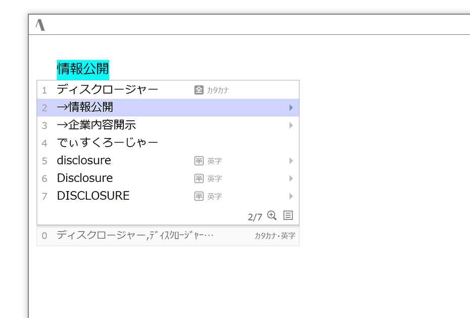 言葉の出だしを忘れてしまったけれども、後半は覚えているといった場合は、「ATOKナントカ変換サービス」。入力したかった言葉の後半部分を推測候補として提示します。