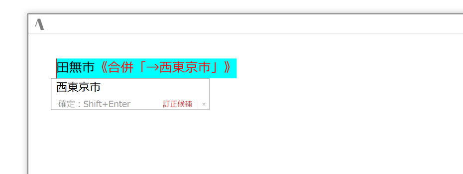 合併が行われた市町村の名前、官公庁名、企業名など変更された名称を指摘して、新しい名称を表示します。