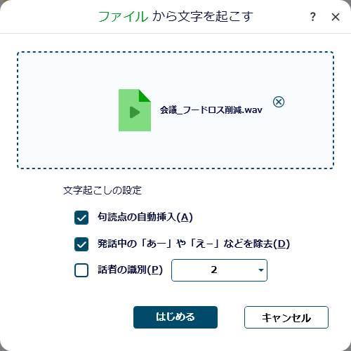 また、話者の識別、ケバ取り、句読点の有無を設定できます。