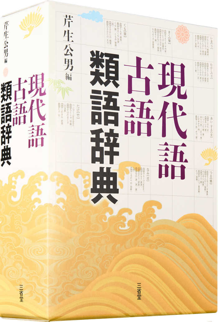 『現代語古語類語辞典』は、現代語から古語まで、日本語の語彙を広く深く見渡すことができる総合類語辞典です。約2万1,000語の現代語を見出し語とし、さらに約4万9,000のフレーズを子見出しとして五十音順に配列。収録語数は延べ約32万4,000語にのぼります。類語・関連語は[現代][近代][近世][中世][中古][上代]の6つの時代区分に基づき、用例が確認できる時代ごとに整理して収録。加えて、関連する慣用句やことわざ、枕詞、動植物の異名なども網羅しています。