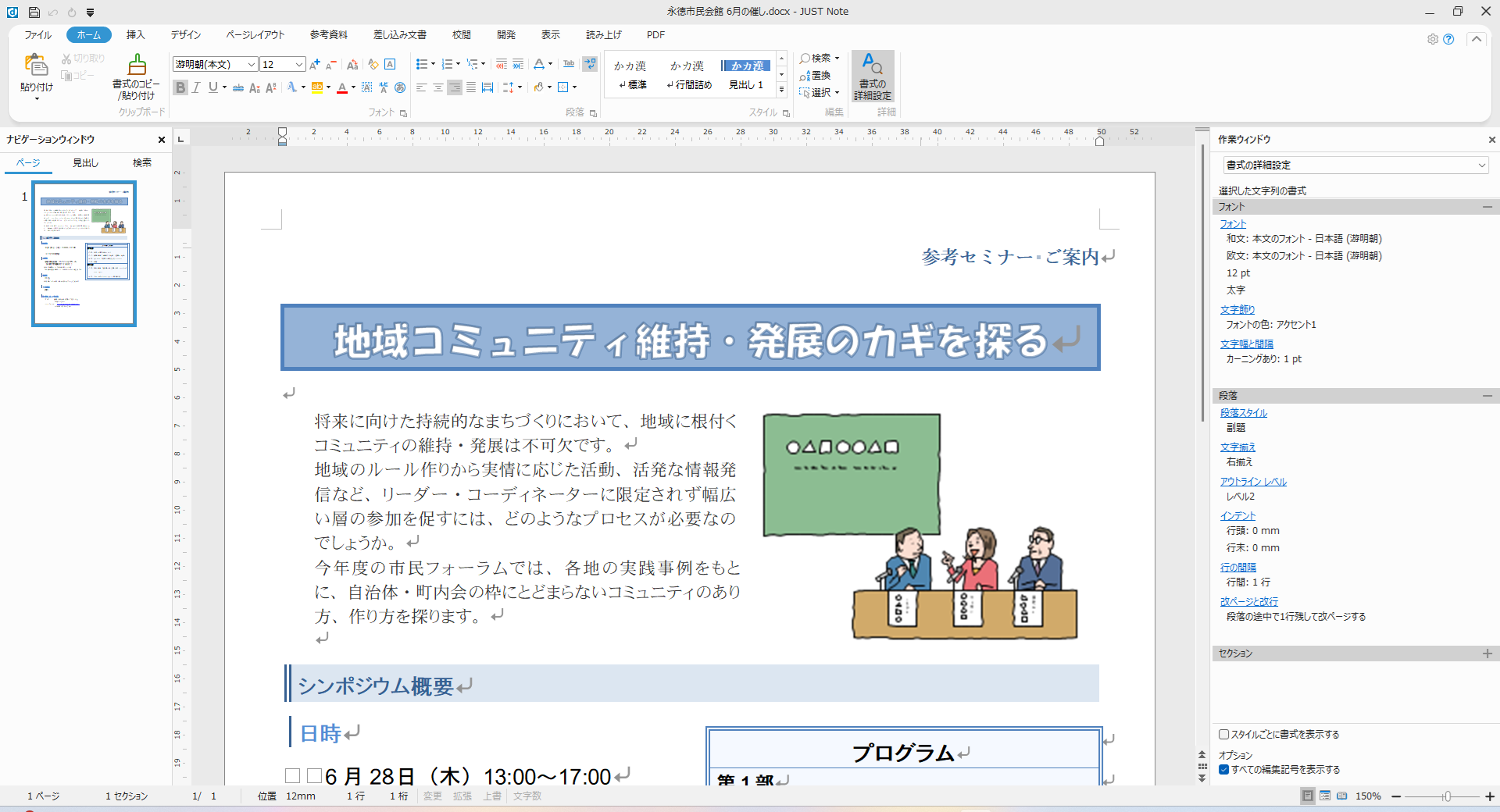 ジャストシステムの長年にわたるノウハウや言語処理技術をフルに活用した高機能ワープロソフト。Microsoft Wordファイル(docx/doc)専用のエンジンを搭載し、Microsoft OfficeやMicrosoft 365のファイルをそのまま活用できます。文字の折り返しや、枠内レイアウトの再現性が向上しました。