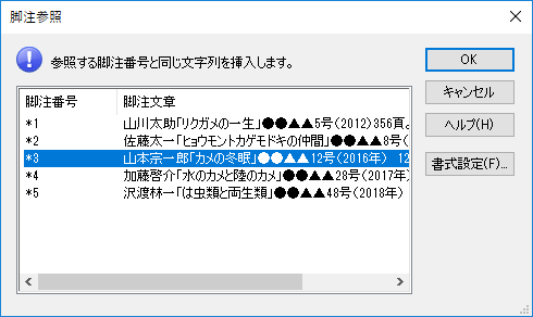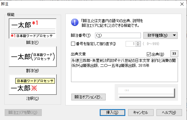 論文やレポート、解説書などを作る際、参考文献や引用を脚注で示すことがあります。一太郎は脚注参照を設定する機能が充実。参照元の脚注の番号が変わっても自動で番号が変わるため、修正の手間がなくミスを回避します。