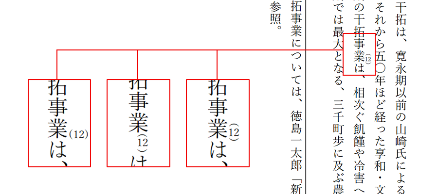 番号が2桁以上でもきれいに「縦組の脚注番号」