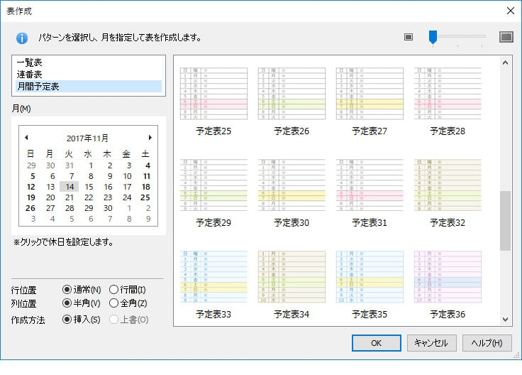 一覧表、月間予定表、連番入りの表など、約350点のサンプルから選ぶだけで、多くのシーンで活用できる洗練されたデザインの罫線表が手間なく完成します。
