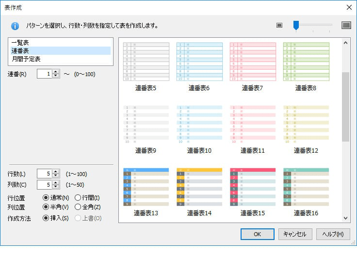 名簿や各種プログラム、ランキング表など連番を付けた表を作成するのに適しています。
