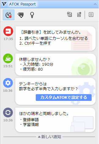 ATOKの利用状況を可視化し、使いやすい入力環境作りに役立ちます。