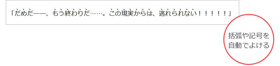 小説、記事など文末に疑問符(?)、感嘆符(!)、リーダ(…)、ダッシュ(―)を用いる文章で便利に使える設定も用意されています。