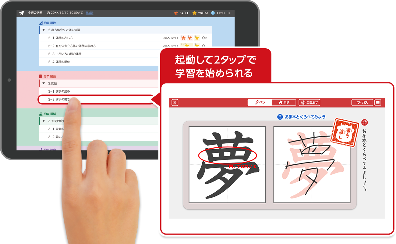 起動から2タップで学習開始