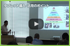 教育委員会の整備担当の方々より「タブレット整備に関して情報共有や課題解決できる場がほしい」というご要望を多数いただきました。その声にお応えし、フューチャースクール推進事業に携わられた先生らをお招きし、タブレット導入と活用に関するセミナーを実施いたしました。 セミナーの内容をダイジェスト版の動画でご紹介いたします。
