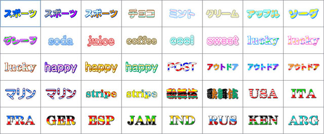 全13種約550点のグラフィカルな文字装飾がワンクリックで完成します。作るアイテムや文字の内容などに合わせて、さまざまなアレンジが楽しめます。