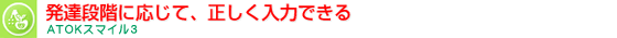 「1・2年生」「3・4年生」「5・6年生」の3種類の辞書により、その学年にあった入力を行います。 |