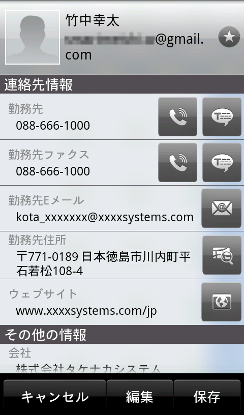 名刺情報の閲覧画面で [編集] ボタンをタップすると、名刺情報の編集画面に移動します。